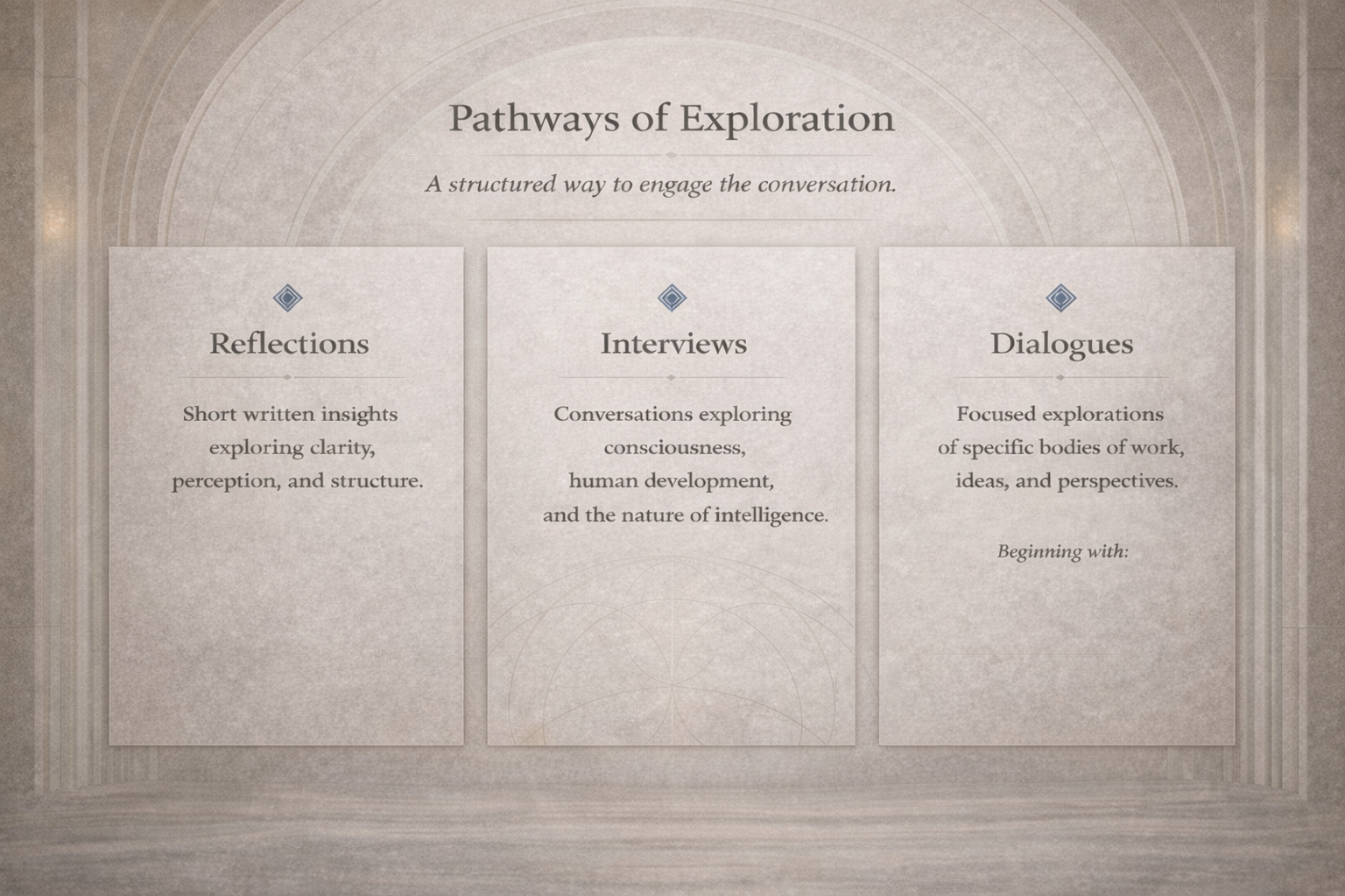Reflections Page Reflections Page Interviews Page Interviews Page COMING SOON Dialogue Page Dialogue Page